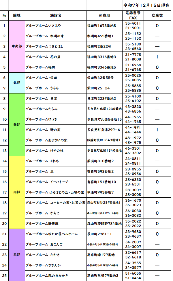 諫早市グループホーム空床情報(※12/17追加情報あり)